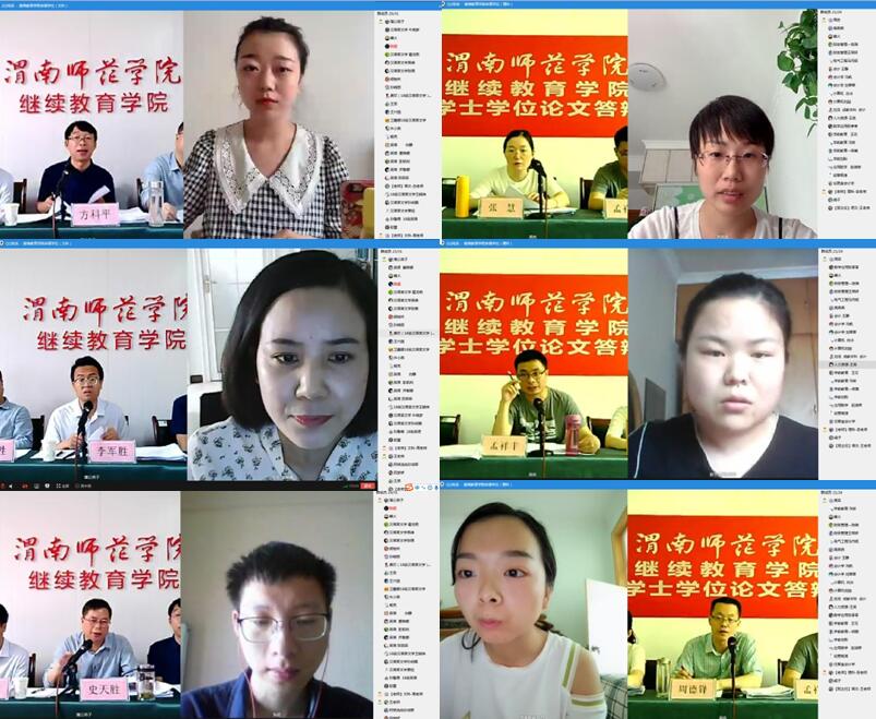 6月13日上午,纽约国际官网继续教育学院在西岳校区举行成人高等教育2020届本科毕业生学士学位论文答辩。为切实做好疫情防控工作,本次论文答辩采取腾讯QQ视频线上答辩方式进行,继续教育学院院长史天胜、副院长周德锋分别担任答辩委员会主席和副主席,来自二级学院的4名专业教师担任答辩委员会成员。汉语言文学、英语、学前教育、人力资源管理、数学与应用数学、计算机科学与技术、会计学等专业的45名申请学士学位的成人本科毕业生分为文理科两组依次进行了论文答辩。
