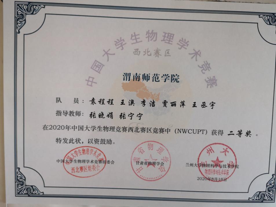 陕西省大学生物理学术竞赛在西北大学举行。陕西省大学生物理学术竞赛由陕西省物理学会组织,竞赛的内容和形式采纳了中国大学生物理学术竞赛(CUPT)的模式。