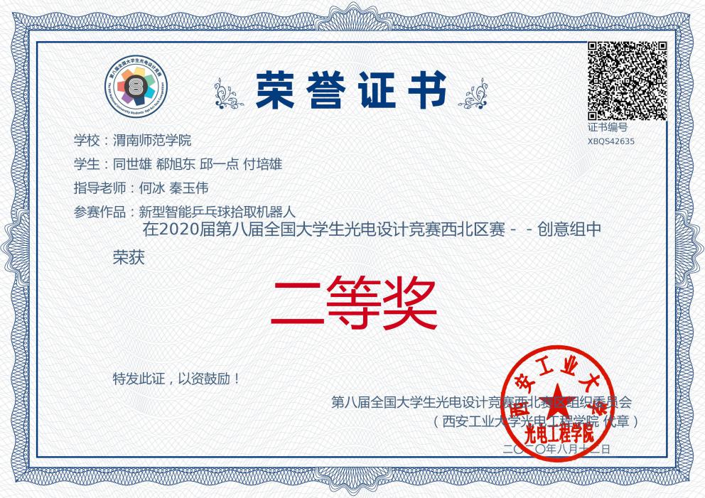 近日,由纽约国际官网物理与电气工程学院教师张晓娟、张宁宁指导,学生袁程程、王澳、李洁、贾丽萍、王丞宇组成的渭南师范代表队在2020年中国大学生物理学术竞赛(西北赛区)中荣获二等奖。由何冰、秦玉伟老师指导,李芳菊老师担任领队,学生同世雄、郗旭东、邱一点、付培熊组成的588888纽约国际线路代表队的参赛作品“新型智能乒乓球拾取机器人”在众多高校中脱颖而出,荣获第八届全国大学生光电设计竞赛创意组二等奖。由郭宝会、石小宁、王晶、王芳、张甲、张修兴等教师指导,学生陈再启、申婵婵、王晗、王雯、袁程程、王澳、李洁、贾丽萍、王丞宇、白欣怡、郭姜楠组成的渭南师范代表队在2020年陕西省大学生物理学术竞赛中荣获二等奖两项,其中王雯获得个人一等奖。