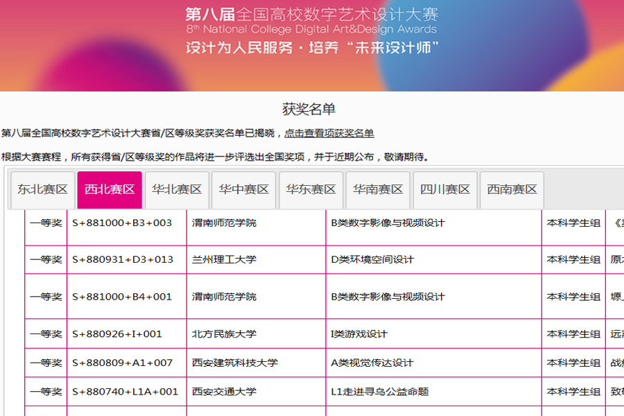 在近日公布的第八届全国高校数字艺术设计西北赛区评选结果中,纽约国际官网在数字影像与视频设计、数字绘画、视觉传达设计三个类别赛项中荣获了一等奖2项、二等奖5项、三等奖14项的好成绩。