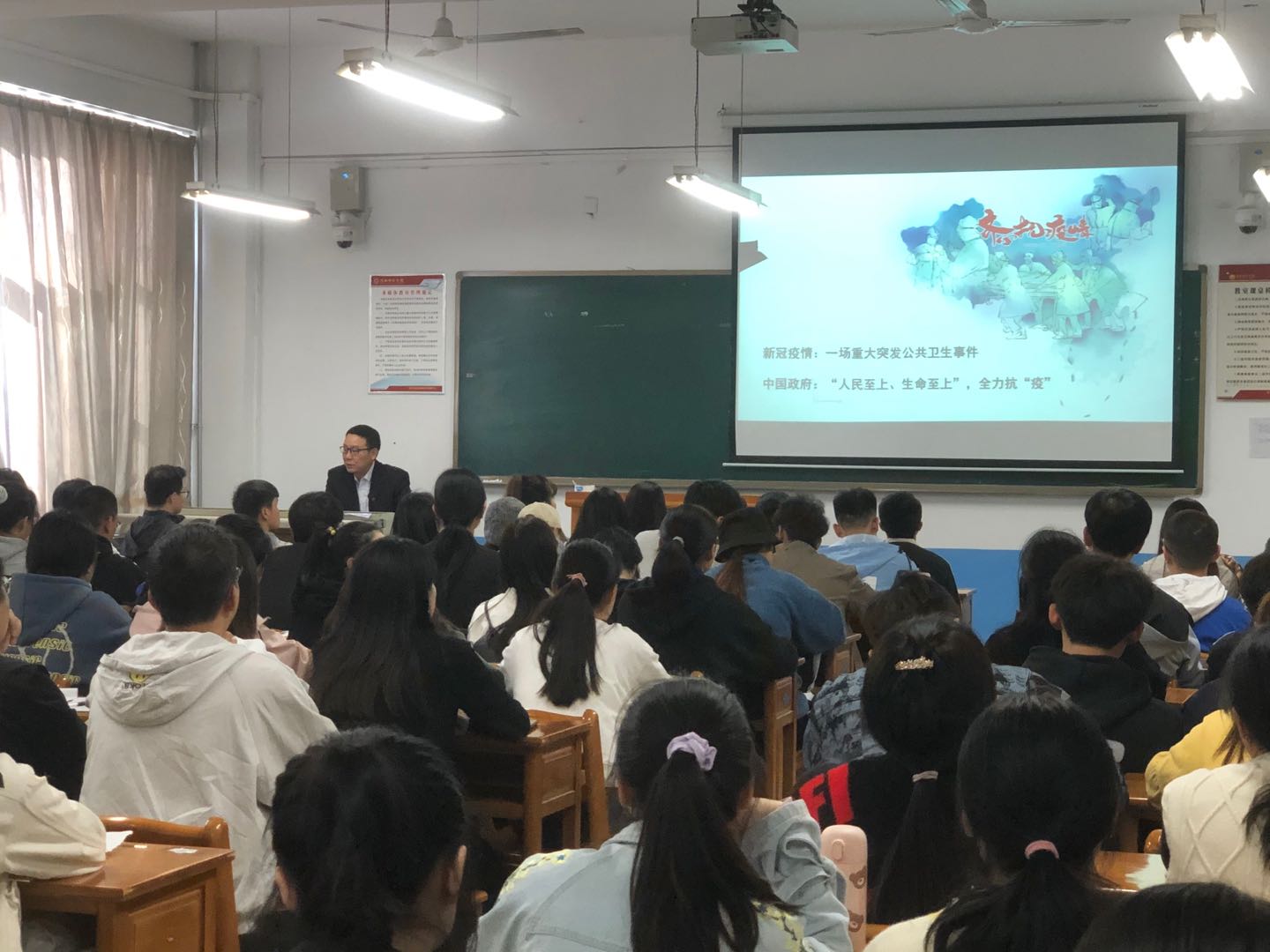 党课上,肖耀刚通过在抗击疫情过程中中国抗击疫情和西方对疫情防控的比较,有力证明了中国共产党的坚强领导和社会主义制度的优越性。他表示,大家要大力弘扬“生命至上、全国同心、舍生忘死、科学施策、命运相连”的伟大抗疫精神,以实际行动爱党爱国爱人民,勤奋学习,苦练本领,为实现中华民族伟大复兴作出贡献。他用详实的数据、真实的图片、精确地表达、深深的情怀为党员们上了一堂生动的党课。