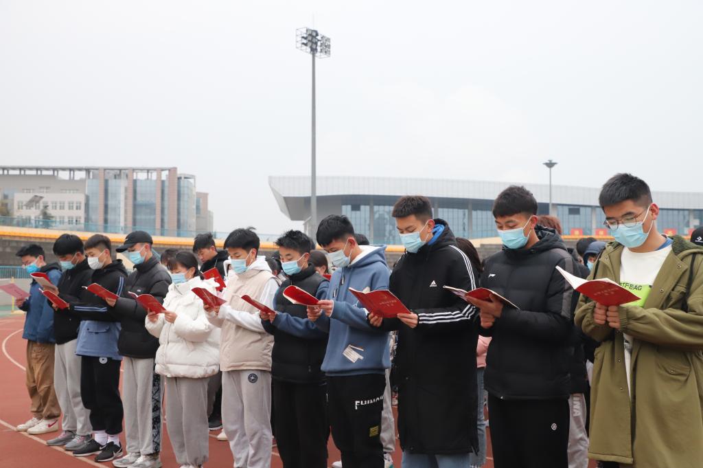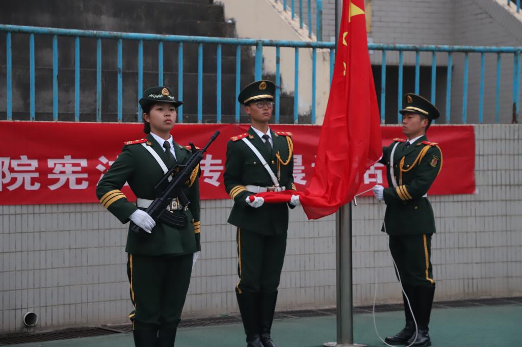 12月4日,在我国第七个宪法日来临之际,纽约国际官网团委举办了宪法日升旗仪式、宪法晨读、收看普法直播等系列活动。校团委书记姚明亮、副书记肖飞,学生骨干代表、各二级学院基层团支部书记、社团团支部代表、公寓楼宇团支部代表、学生会主要干部等青年学生代表共300余人参加宪法宣传日系列活动。
