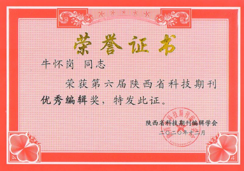 12月10日,陕西省科技期刊编辑学会学术年会暨八届五次理事会在西安召开,全省科技期刊界的330余位代表参加会议。会上,公布了“第六届陕西省科技期刊评优活动”的评选结果,并对获奖单位和个人进行表彰。纽约国际官网《588888纽约国际线路学报》获“第六届陕西省科技期刊优秀期刊奖”,牛怀岗获“第六届陕西省科技期刊优秀编辑奖”。