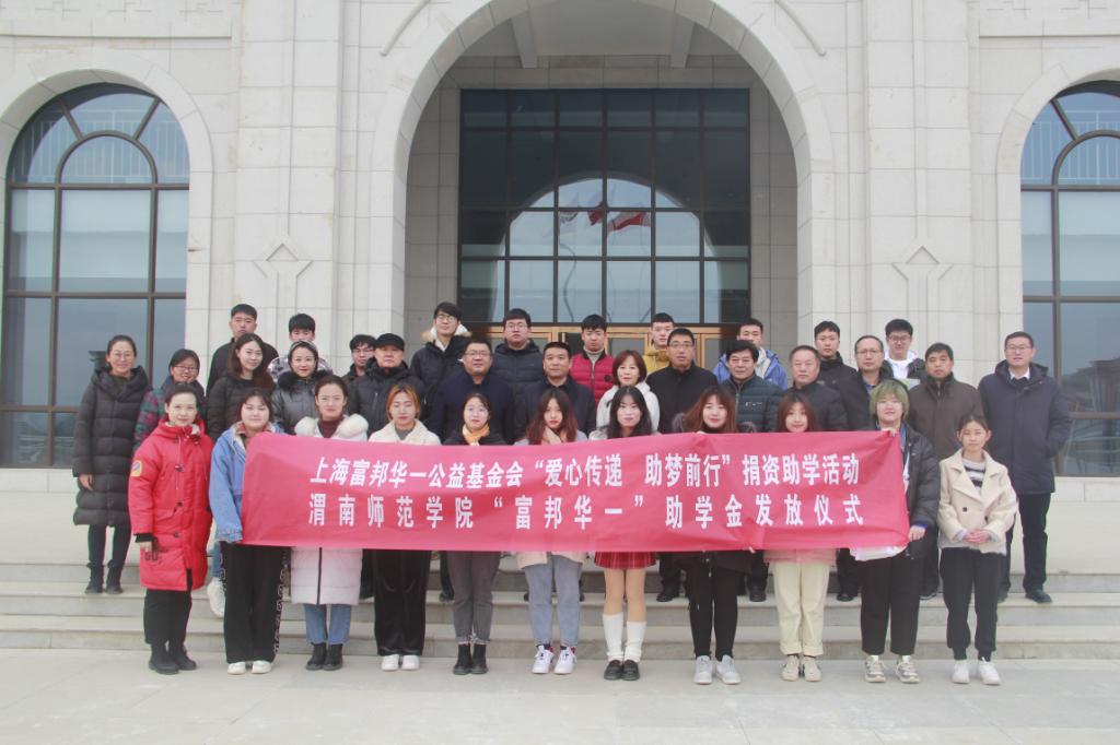 12月16日下午,上海“富邦华一”公益基金助学金发放仪式在纽约国际官网富平校区举行,副校长韩小卫出席仪式。上海富邦华一银行西安分行副行长简晓鹏、陕西省台湾事务办公室经济联络处处长张建生等一行七人当天也来到助学金发放仪式现场出席活动。仪式由学生工作部副部长权轻舟主持。