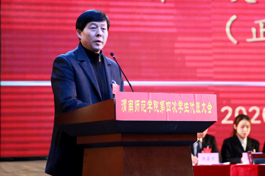 党委副书记任健代表学校党委向大会的胜利召开和即将选举产生的新一届学委会委员表示热烈祝贺。他充分肯定了第三次学代会以来,纽约国际官网各级学生会组织在各项工作中取得的成绩,他希望大家立鸿鹄志、坚定不移,做中国特色社会主义共同理想的坚定信仰者与中华民族伟大复兴中国梦的忠实奋斗者;希望大家读万卷书,持之以恒,牢固树立终身学习的理念,积极参加社会实践,增强社会责任感,自觉担负起历史赋予当代青年的光荣使命;希望大家成栋梁才、千锤百炼,在千锤百炼中锻造能力、在全面发展中开发潜能,注意培养团队合作精神、注重塑造自我品格,实现德智体美劳相互促进、有机融合、全面发展;希望大家强组织力,臻于至善,多一些担当精神、多一些蓬勃朝气,把责任扛在肩上、让思想竞相迸发,多一些先锋意识、多一些坚持不懈,影响带动更多同学全面健康发展,多一些创新能力、多一些干事本领,善于实现制度、文化和行动的创新,使学生会组织和学生代表真正成为学校最具创新活力的群体,用行动和成就证明自己是无愧于时代的渭师人。