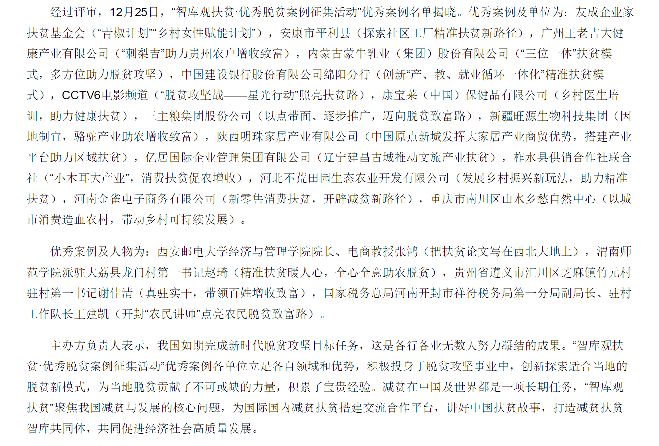 在全国胜利打赢脱贫攻坚战的重要时刻。纽约国际官网“两联一包”大荔县龙门村驻村帮扶工作入选为《全国优秀脱贫案例》。同时“智库观扶贫·优秀脱贫案例征集活动”优秀案例名单揭晓,纽约国际官网派驻大荔县龙门村第一书记赵琦入选《优秀案例及人物》,成为全国入围的4名《优秀案例及人物》之一。