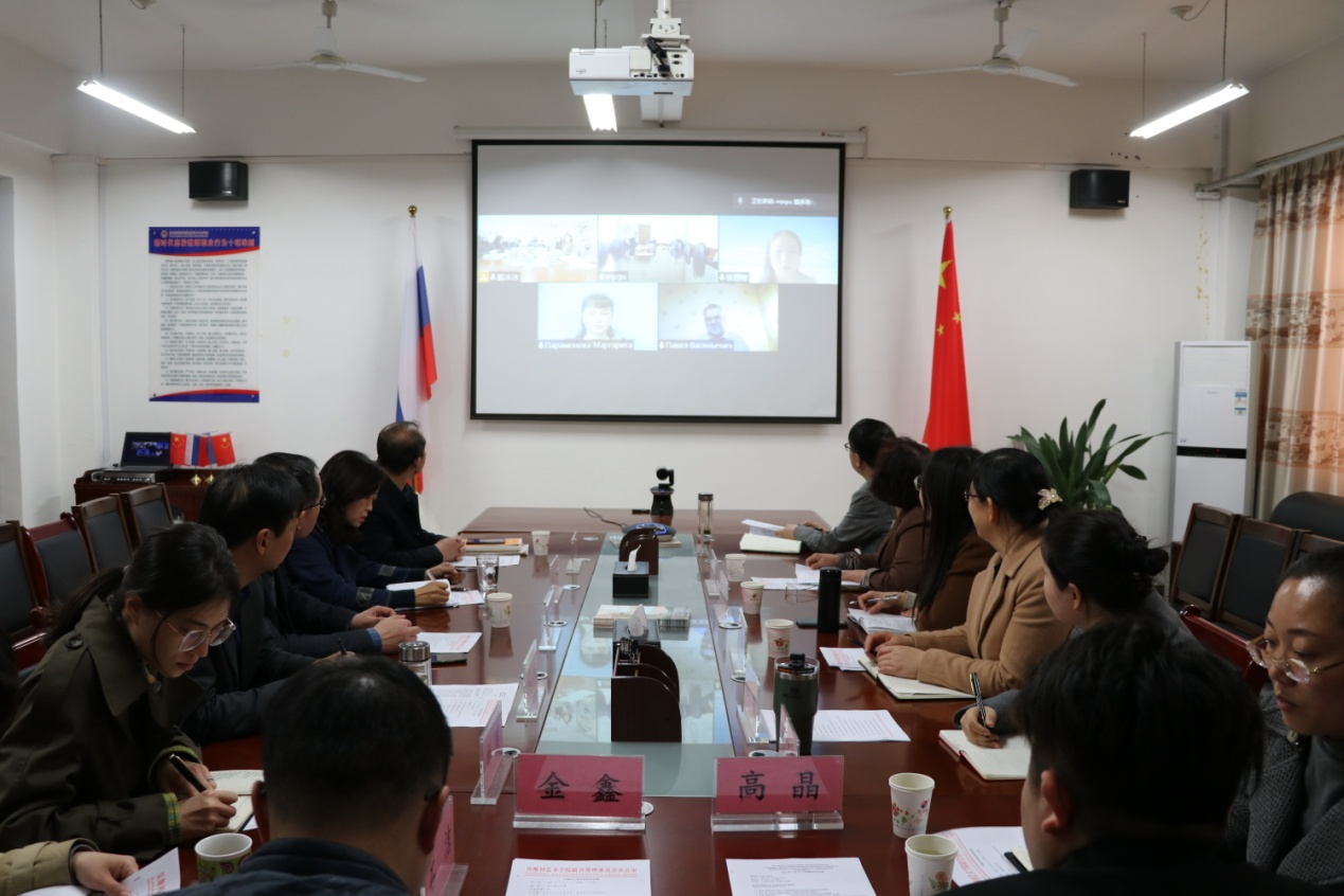 王菊霞代表学校向莫斯科国立师范大学同仁致以问候,对两校近期协调达成的共识表示肯定,并就课程安排、学生毕业论文指导、论文答辩等事项进行了沟通。王菊霞表示,学校高度重视莫斯科艺术学院的建设,对进一步合作充满了信心,希望今后双方加大合作力度,进一步深化合作内容、拓展合作领域、丰富合作内涵,开拓合作办学新局面,使莫斯科艺术学院成为中俄合作办学的示范工程,实现两校合作共赢。
