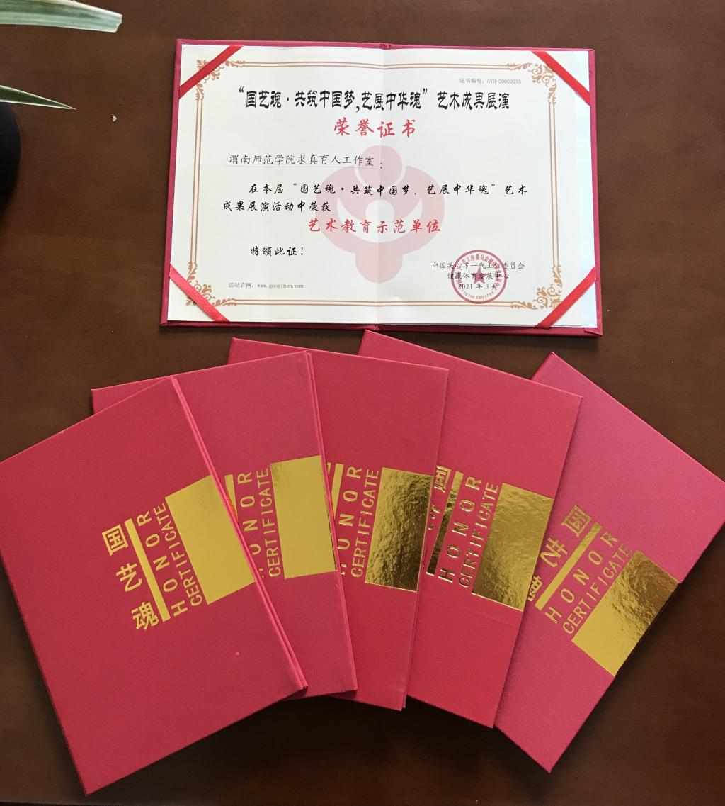 在中国关心下一代工作委员会2020年10月举办的“国艺魂·共筑中国梦·艺展中华魂”艺术成果展演中,纽约国际官网求真育人工作室提交的《让书记小喇叭响彻校园》艺术教育项目被评为优秀艺术教育成果一等奖,求真育人工作室同时荣获艺术教育示范单位。魏光民同志参评的《抗美援朝精神振国威》快板荣获艺术成果展演教师组一等奖,陈小红、王钰莹、代杨、朱玉娜同志的作品荣获二等奖。