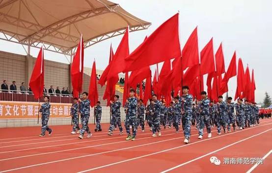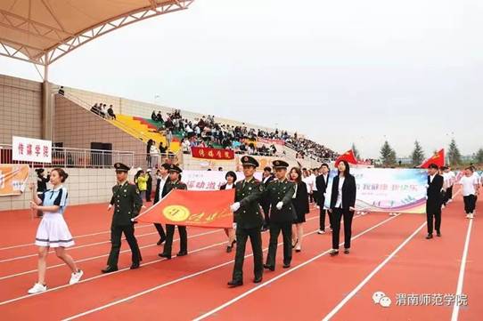 随后,各二级学院方阵以整齐的步伐、响亮的口号、特色鲜明的表演向我们展示了渭师莘莘学子特有的朝气,同时也向我们展示渭师学子的自信与热情。