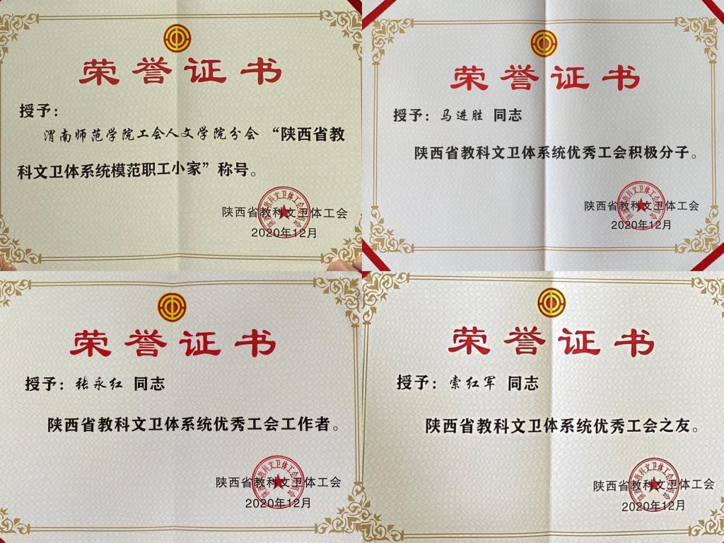 其中,纽约国际官网人文学院分会被授予“陕西省教科文卫体系统模范职工小家”称号;数学与统计学院张永红同志被授予“陕西省教科文卫体系统优秀工会工作者”称号;外国语学院马进胜同志被授予“陕西省教科文卫体系统优秀工会积极分子”称号;计算机学院索红军同志被授予“陕西省教科文卫体系统优秀工会之友”称号。
