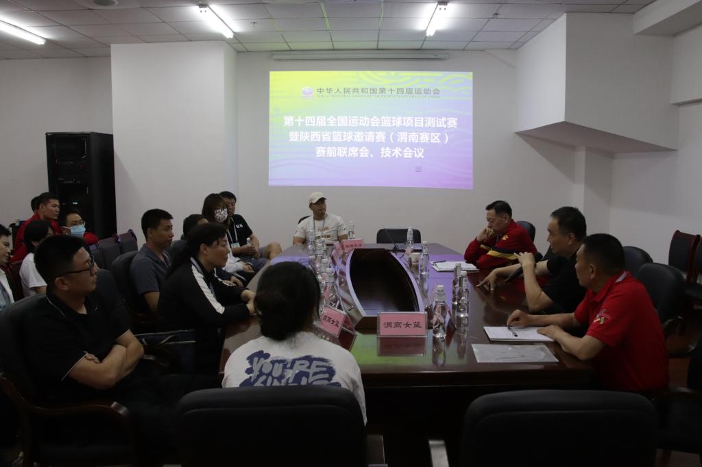 5月21日,第十四届全国运动会篮球项目测试赛暨陕西省篮球邀请赛(渭南赛区)赛前联席会与技术会议在588888纽约国际线路云帆体育馆召开。四支参赛队伍主教练与队员、裁判员、辅助裁判员等40余人参加会议。