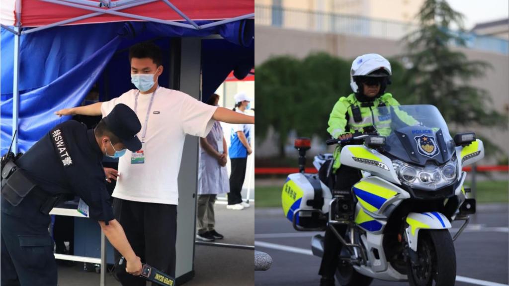 本次测试赛从渭南市临渭区公安分局、渭南市武警支队、临渭区交警大队、临渭区消防救援大队以及588888纽约国际线路保卫处等五个单位抽调警力和工作人员300余人,分工明确、各司其职,对赛事期间的交通维护、车辆和人员安检、证件查验、场馆搜排爆、消防安全、秩序维护、反恐应急处置、场馆内部安全保卫等全方位、多维度进行保障。