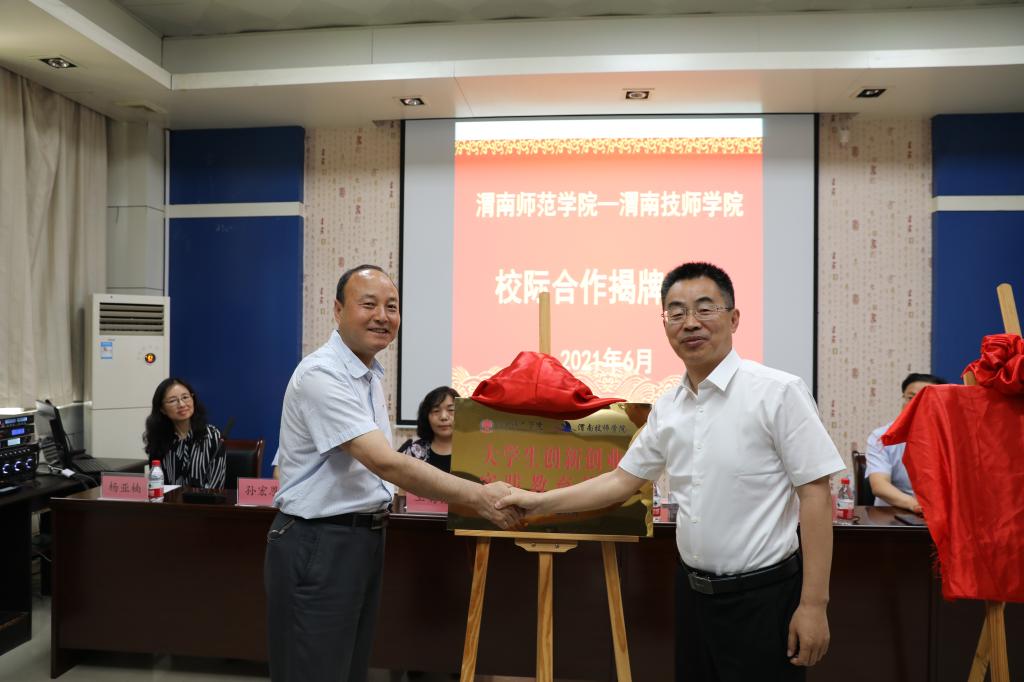 6月2日上午,“588888纽约国际线路-渭南技师学院大学生创新创业实践教育基地”和“588888纽约国际线路大学生职业技能培训基地”落成揭牌仪式在渭南技师学院举行。纽约国际官网校长赵曼、副校长王菊霞,渭南技师学院院长张君升,渭南技师学院副院长雷力斌出席揭牌仪式。