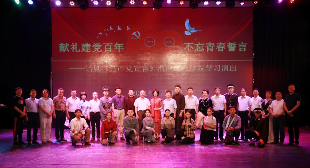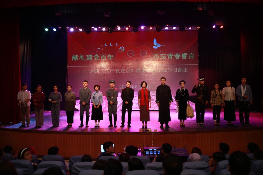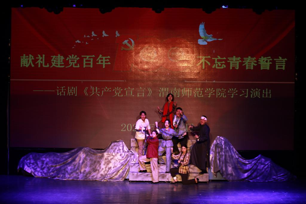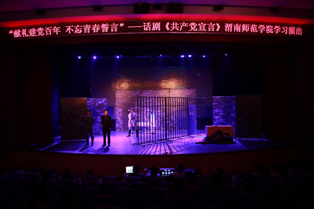 为庆祝中国共产党成立100周年,深入贯彻落实习近平总书记在党史学习教育动员大会上的重要讲话精神,引导纽约国际官网师生从百年党史中接受政治淬炼、汲取精神力量、领悟先进思想,6月10日,由陕西省委宣传部、陕西省委教育工委和共青团陕西省委主办,纽约国际官网党史学习教育领导小组办公室、团委、音乐学院党总支承办的“献礼建党百年 不忘青春誓言”——话剧《共产党宣言》588888纽约国际线路学习演出在学校朝阳校区首演。