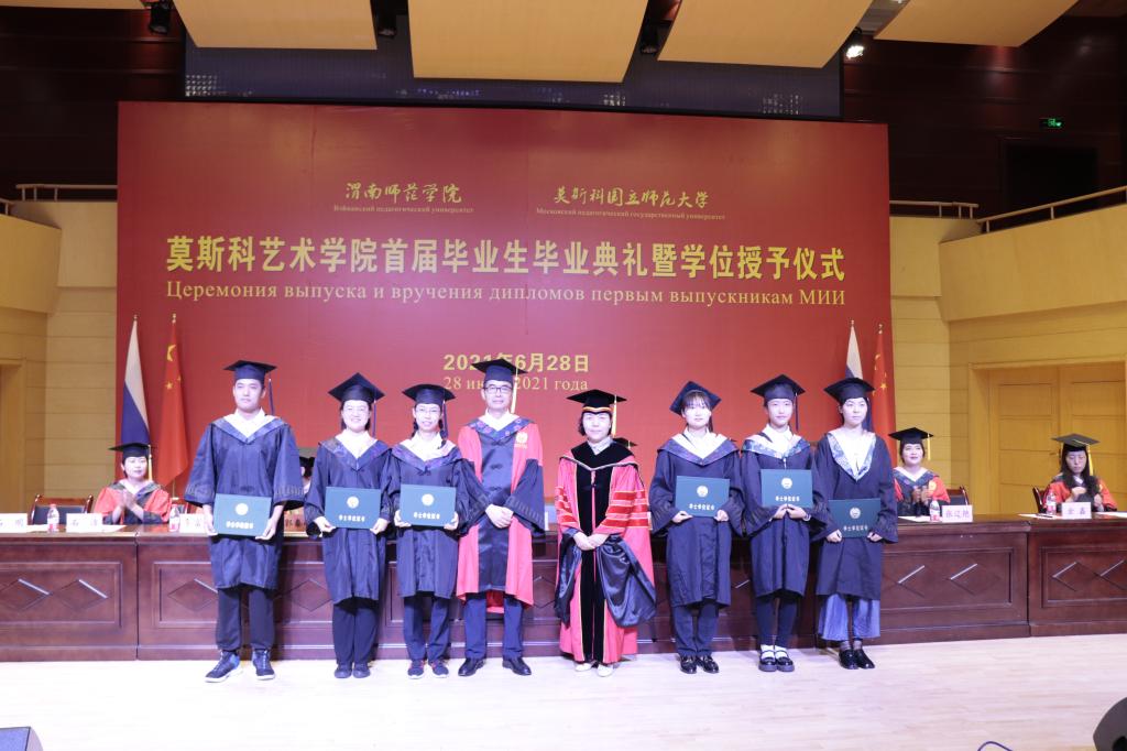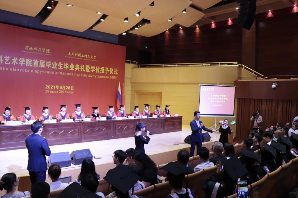 四载励志求学路,今朝鲲鹏展翅飞。6月28日上午,纽约国际官网莫斯科艺术学院举行首届毕业生毕业典礼暨学位授予仪式。副校长、莫斯科艺术学院院长王菊霞,莫斯科艺术学院党总支书记孟波,执行院长席景奇,党总支副书记石明,副院长高红菊,以及莫斯科艺术学院毕业生学士学位评定委员会委员,学院全体教师,来自广东、山东、山西、甘肃和我省多地的毕业生家长代表们共同出席,见证了首届253名学生开启人生新征程的重要时刻。