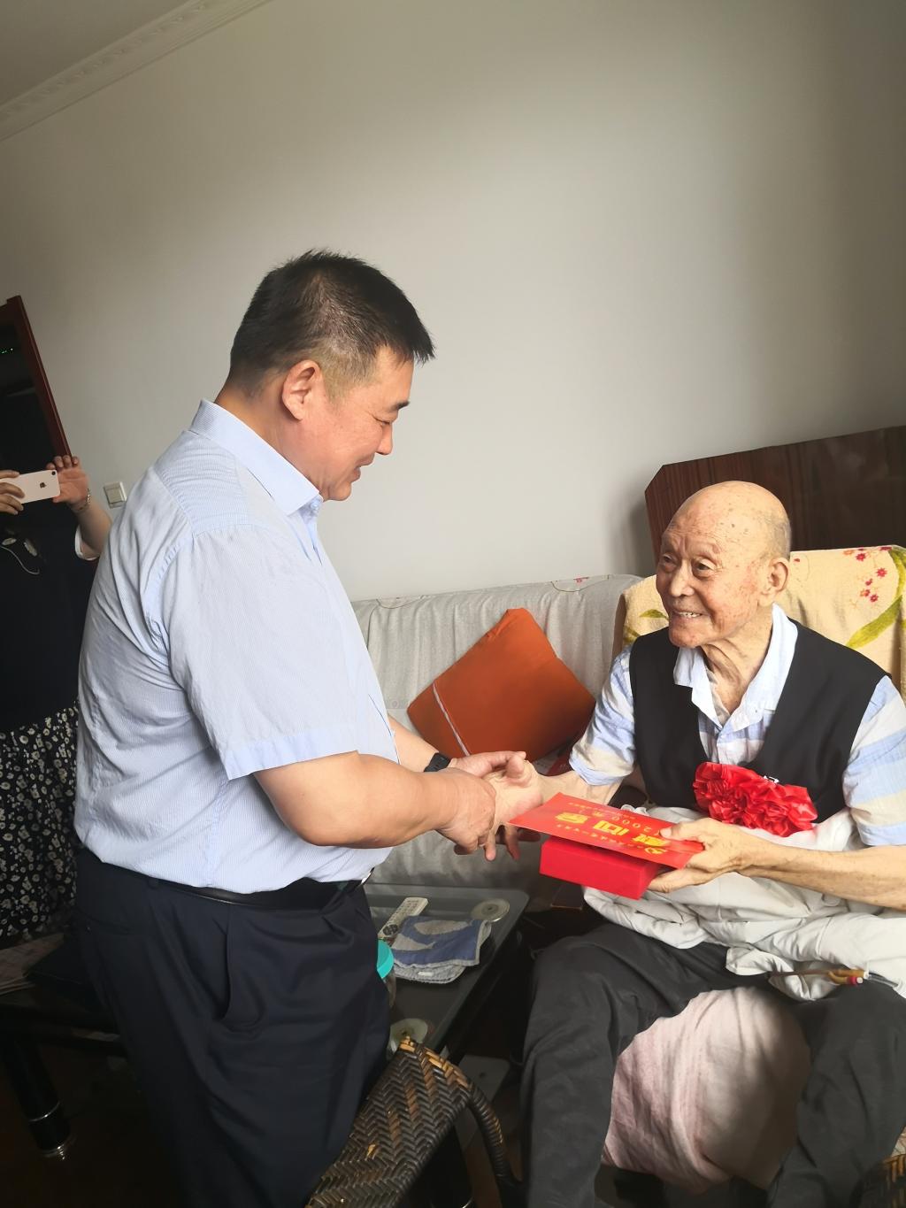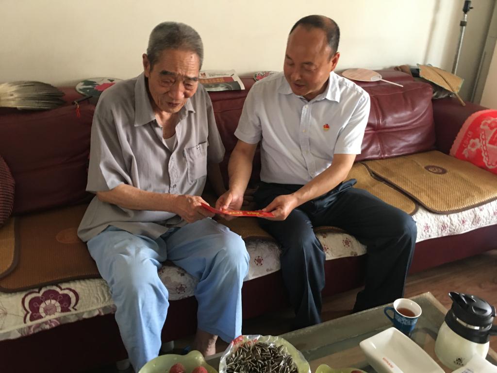 走访慰问中,学校领导向未能参加“光荣在党50年”纪念章颁发仪式的老党员颁发了纪念章,并感谢老党员为祖国的教育事业、学校发展做出的突出贡献。