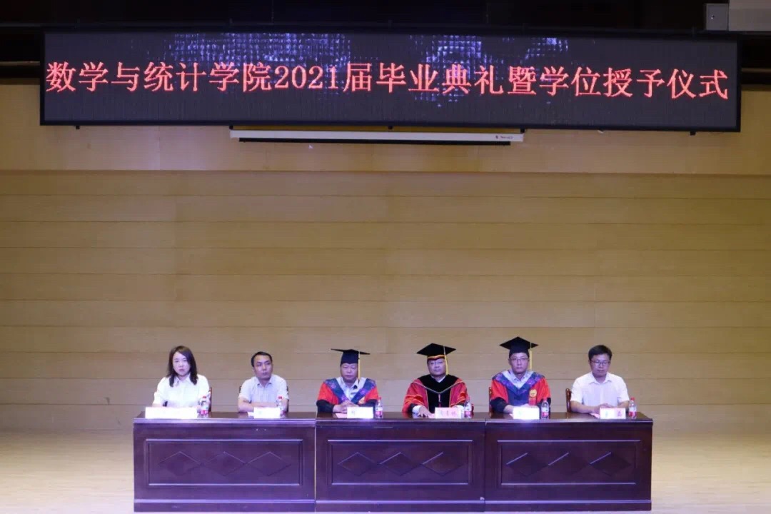 在喜迎百年华诞的特殊日子里,在离别远航的难忘时刻,在歌声中,副校长常青林、学院党总支书记张同琦、院长陈斌为毕业生代表授予学位,全体毕业生与教师合照留念,数学与统计学院2021届毕业典礼暨学位授予仪式圆满完成。山水万程,前路漫漫,笑着挥别四年时光,勇敢踏上新的征程。愿数统学子前程似锦,未来可期。