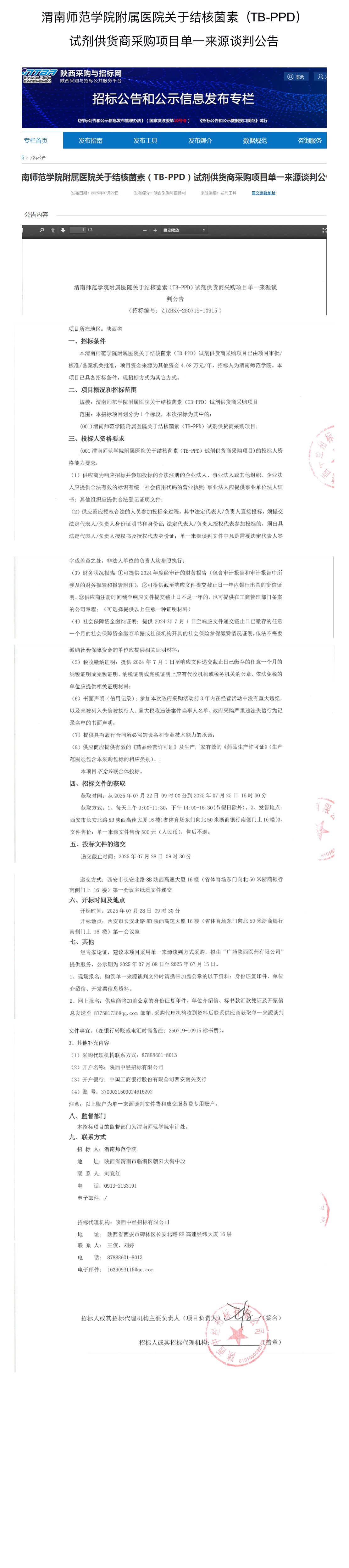 588888纽约国际线路附属医院关于结核菌素(TB-PPD) 试剂供货商采购项目单一来源谈判公告
