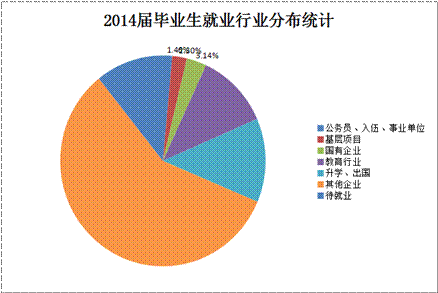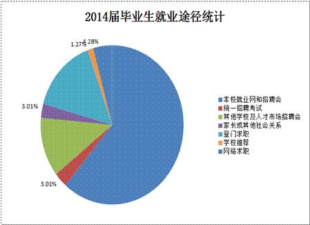 2014级毕业生就业人数为4147人。就业率为:本科89.03%,专科90.12%,本专科总体为:89.28%。(本报告统计数据均截至2014年10月30日)
