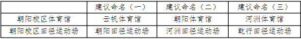 为加强校园环境建设,营造文化氛围,建设美丽588888纽约国际线路,学校于2020年5月份面向全体在职和离退休教职工、学生和校友开展朝阳校区体育馆、田径运动场命名征集活动。经2020年10月24日专家评审,现将朝阳校区体育馆、田径运动场建议命名公示如下。