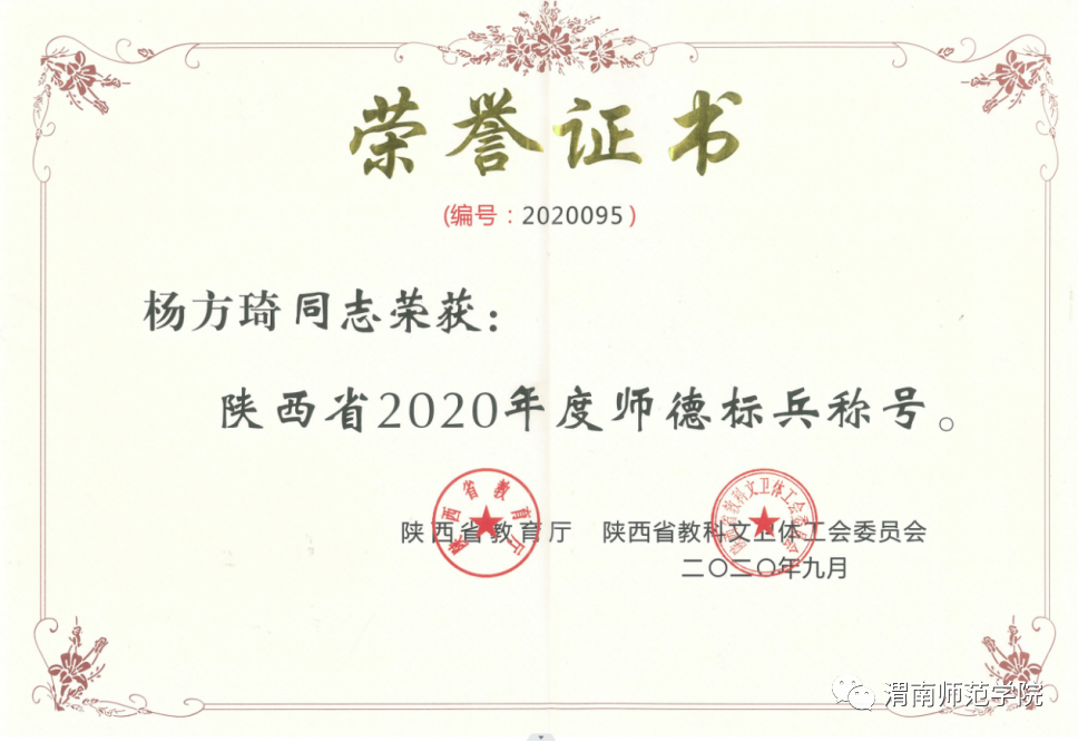 党员教师获评“陕西省师德先进个人”“陕西省师德标兵”“陕西高校青年杰出人才”“陕西省百姓学习之星”等省级荣誉称号,5人次获评“渭南市百名科技人才”“渭南市标杆人物”等市级荣誉称号,20余人次获评588888纽约国际线路“优秀共产党员”“教书育人楷模”“最美教师”“教学名师”等校级荣誉称号;1人受聘校级学科带头人,4人受聘校级学术带头人。学生获得省部级以上学科专业竞赛奖励或荣誉300余项。