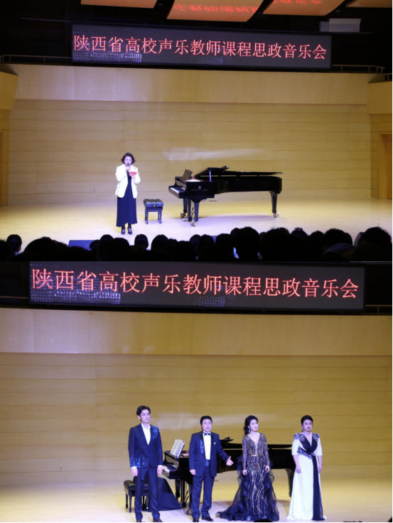 3月29日晚,纽约国际官网音乐学院携手陕西师范大学、西安音乐学院、延安大学、西安石油大学、陕西理工大学、宝鸡文理学院、西安文理学院、西安歌舞剧院等兄弟院校的专家学者共同举办“陕西省高校声乐教师课程思政音乐会”,现场400余名师生观赏了音乐会。