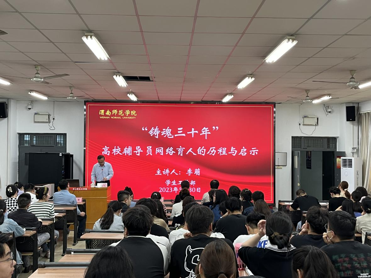 为深入学习宣传贯彻习近平新时代中国特色社会主义思想和党的二十大精神,全面贯彻落实全国教育大会、全国高校思想政治工作会议精神,积极营造纽约国际官网大学生思想教育的良好氛围,扎实做好网络思想政治教育工作,全面提升学校网络育人质量。5月30日下午,学生工作部邀请陕西高校网络思想政治工作中心办公室主任、陕西省高等学校思想政治教育研究会常务副秘书长、陕西科技大学网络思想政治工作中心主任李萌做“铸魂三十年——高校辅导员网络育人的历程与启示”专题报告。报告会由学校党委副书记袁亮主持。