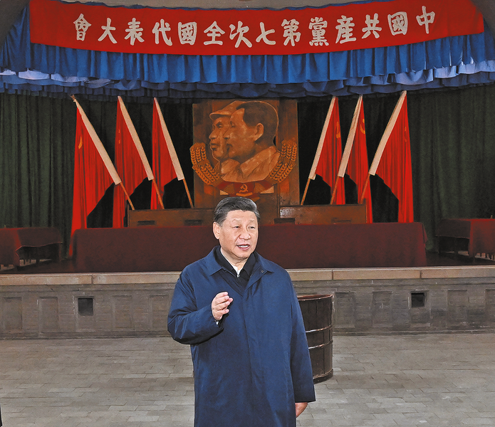 习近平强调,当年毛泽东同志等老一辈革命家在延安,住窑洞、吃粗粮、穿布衣,用“延安作风”打败了“西安作风”。全党同志要把老一辈革命家和共产党人留下的光荣传统和优良作风传承好发扬好,勇于推进党的自我革命,坚定不移推进全面从严治党,始终保持党的先进性和纯洁性,确保党始终成为中国特色社会主义事业的坚强领导核心。