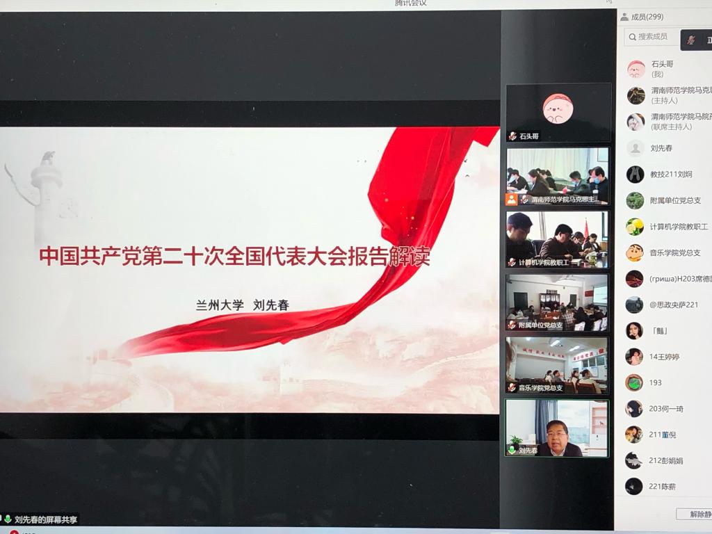 党的二十大,高举旗帜、凝聚力量、团结奋进,具有重大的政治意义、历史意义、时代意义。为进一步加深纽约国际官网党员干部和广大师生对党的二十大精神的认识和理解,加大对党的二十大报告的广泛宣传和全面解读,在线上分享相关的专家辅导课件基础上,10月26日下午,纽约国际官网特别邀请兰州大学马克思主义学院刘先春教授作专题辅导报告。