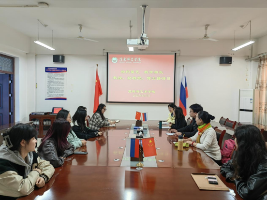 3月1日下午,莫斯科艺术学院召开本学期首场“相约莫艺,教学相长”教授、副教授、博士接待日活动。郭秦岭、周欣、李逸轩三位教师在会议室接待了来访的9名同学。