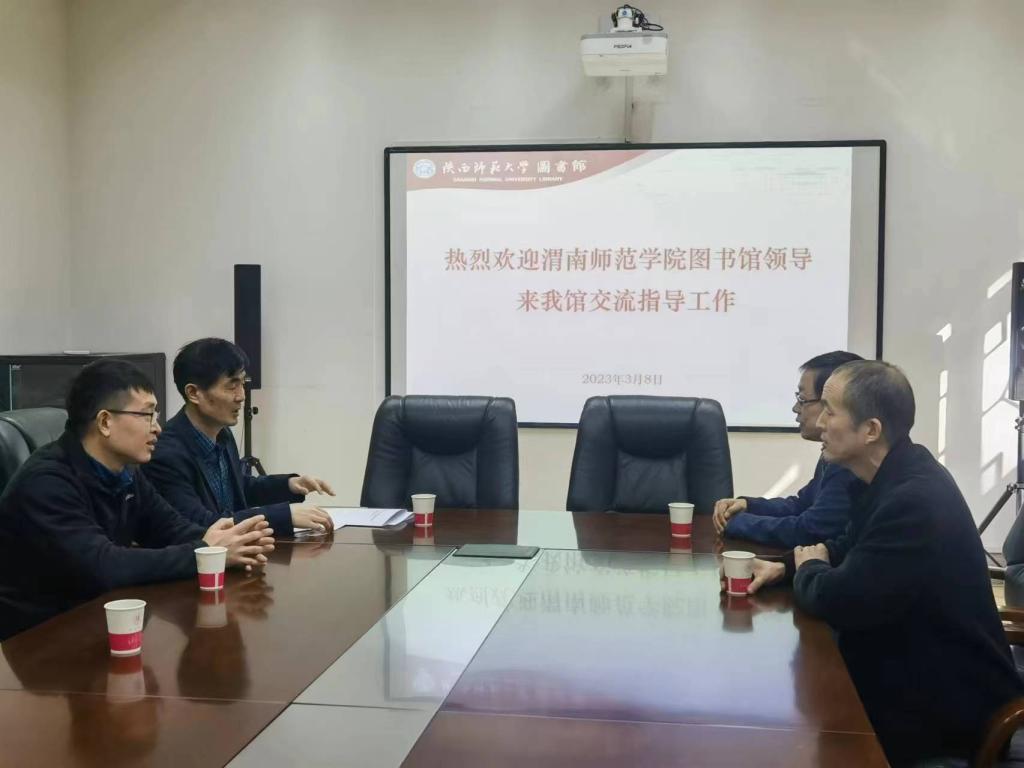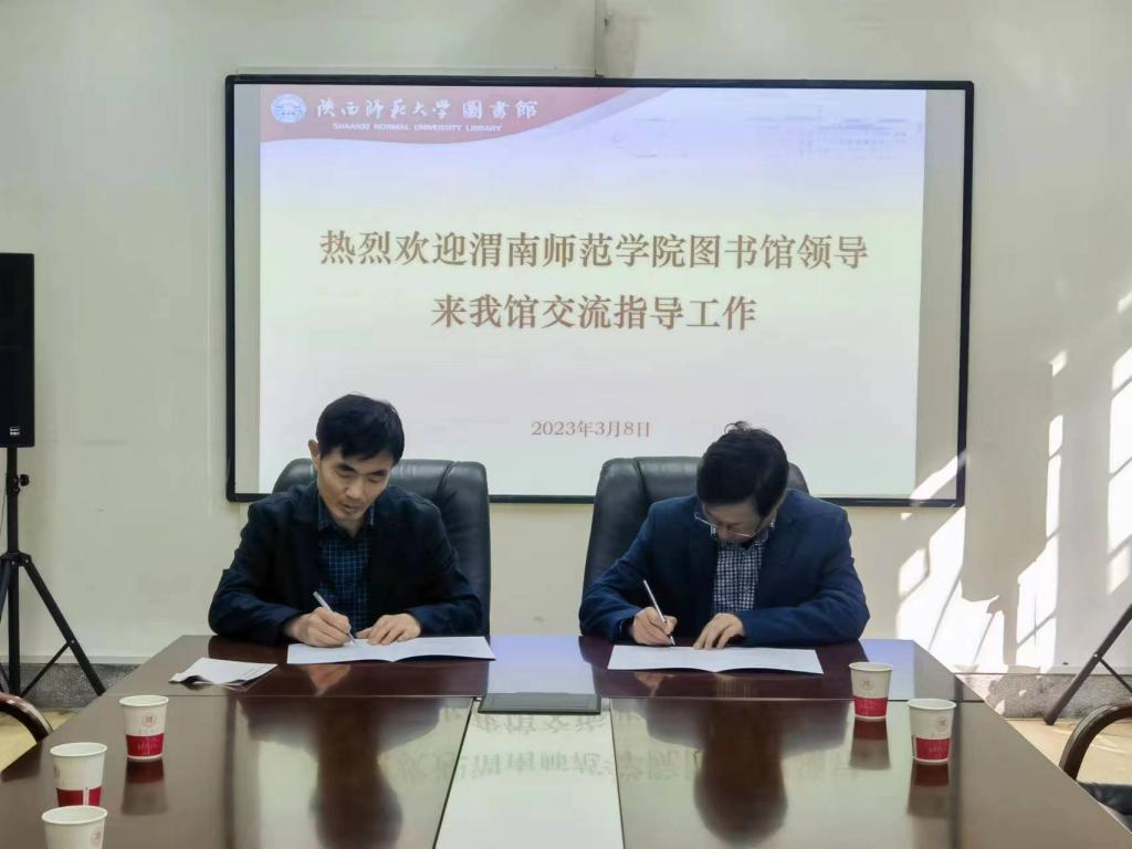 3月8日上午,赴陕西师范大学图书馆学习调研,副馆长田向阳热情地接待了来访人员,详细地介绍了陕西师范大学图书馆情况,在充分交流的基础上,就“资源共建共享”达成了一致,双方签订了《陕西师范大学图书馆与588888纽约国际线路图书馆资源共建共享协议》。随后,相关人员就纸质期刊订购、纸质图书资源建设等问题进行了学习交流。