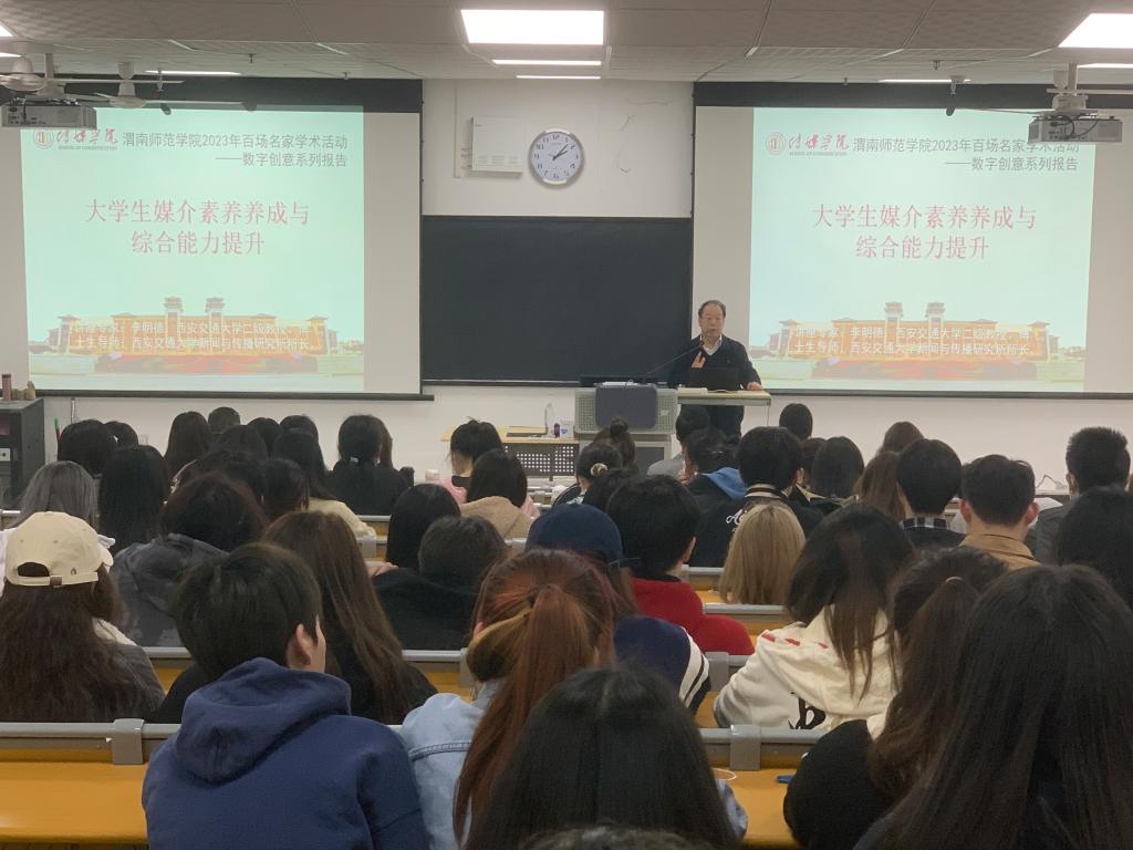 3月7日下午,传媒学院特邀西安交通大学李明德教授为师生作“大学生媒介素养养成与综合能力提升”讲座。传媒学院院长曹熙斌主持,师生200余人参加讲座。
