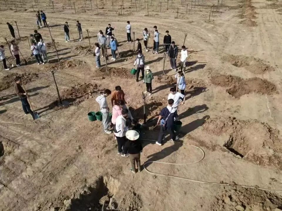 经过一上午的辛勤劳作,树苗矗立在地里、摇曳在风中,形成一道靓丽的风景线。十年树木,百年树人。品尝了劳动的艰辛和乐趣后,师生们纷纷表示对能够参与本次植树活动并收获活动带来的欣慰和喜悦,感到非常荣幸。