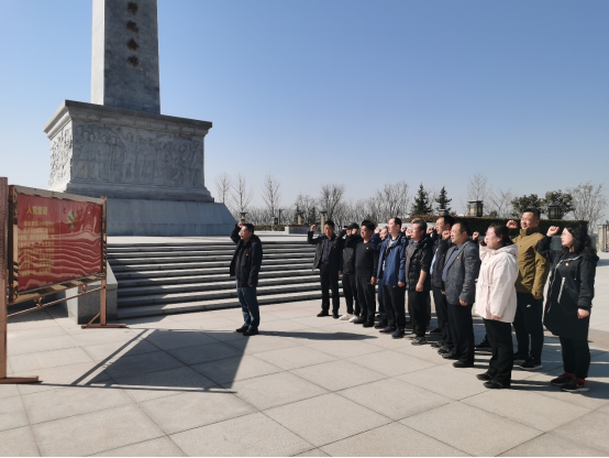 在富平县庄里镇八路军120师抗日誓师纪念碑前,党总支书记邹朋波带领全体党员面向党旗,举起右拳,重温了入党誓词。“1937年9月2日,在中华民族面临生死存亡的紧要关头,由中国工农红军第二方面军等部改编的八路军120师8227名将士,在这里发出了‘不把日本强盗赶出中国,不把汉奸完全肃清,誓不还家!’的铮铮誓言,随后便东渡黄河,开赴华北抗日前线”,大家听着党总支委员李斌乐的生动讲述,瞻仰了八路军120师抗日誓师纪念碑,感受着先烈们为保家卫国出征时视死如归、义无反顾的英雄气魄。
