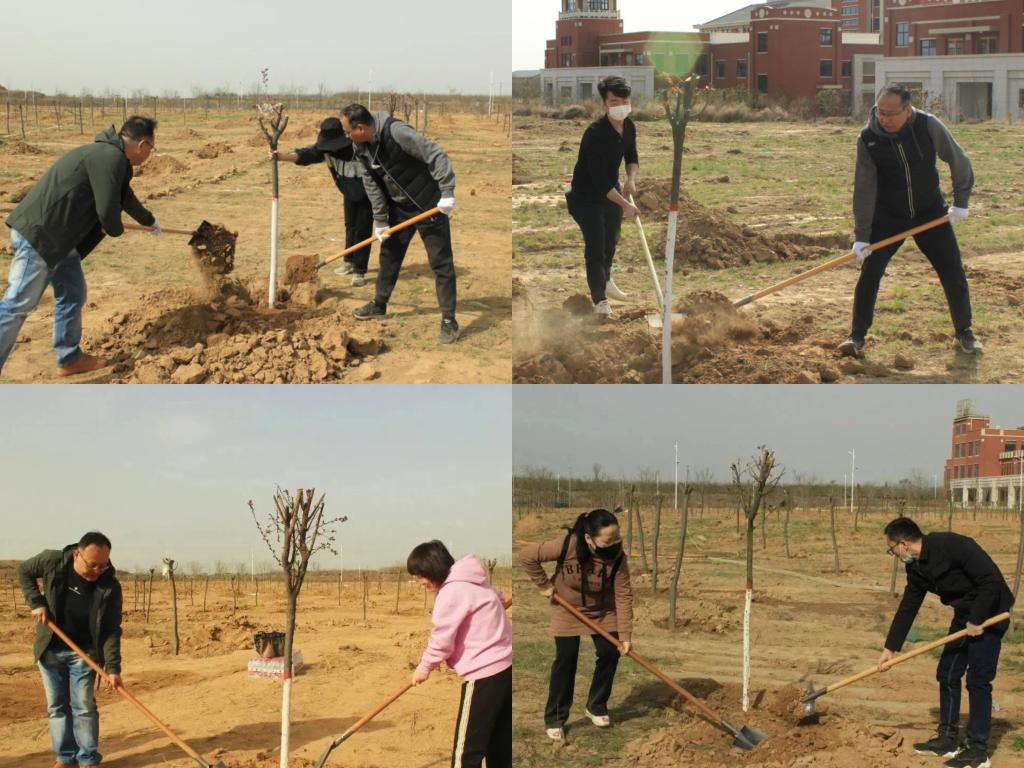 活动中,师生们分工协作、干劲十足,铲土培苗、填土踩实、浇水覆土、合力栽种,道道工序细致认真、有条不紊。经过3个小时的共同努力,100余株紫叶李在春风中昂然挺立,为初春的富平校区增添了一抹新绿。