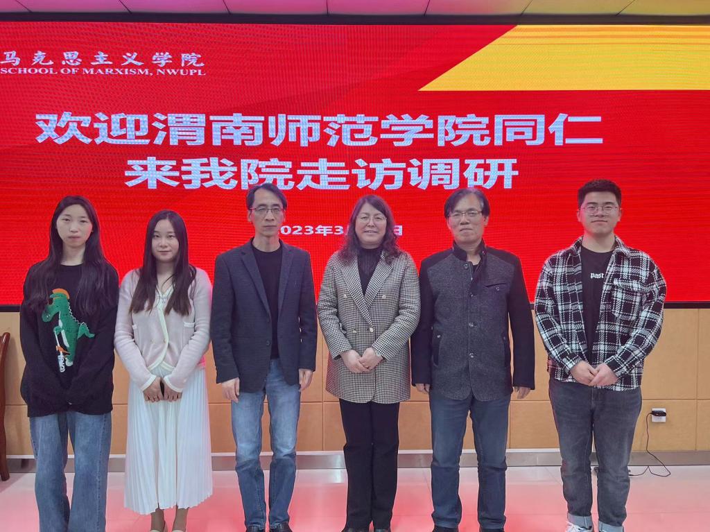 为进一步加强马克思主义学院建设、促进思想政治理论课教育教学改革创新,3月15日,马克思主义学院院长张萍、副院长单剑峰及部分专业负责人、教研室主任等先后赴陕西师范大学、西北政法大学马克思主义学院进行调研。
