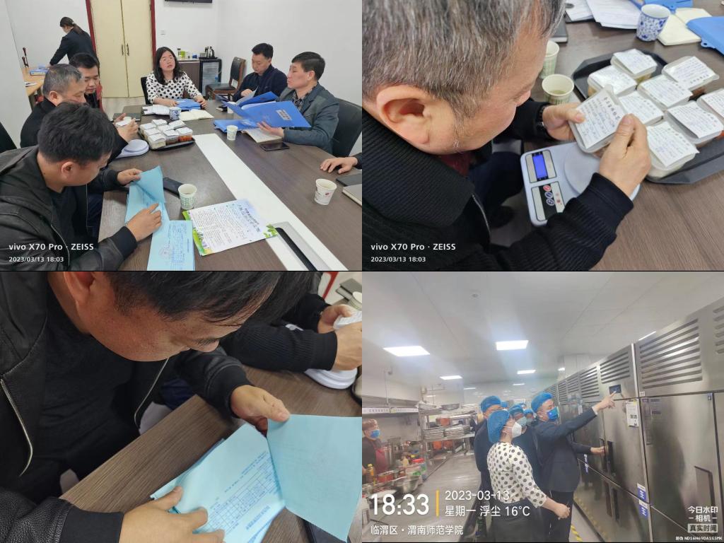 3月13日,科室召开食品安全专题会议。落实食品安全“两个责任”培训内容和市场监督管理局印发的应知应会内容。会上突击抽检了各餐饮公司管理资料,会后观摩巡检了后厨操作及原材料品质情况,严防严控校园食品安全及卫生风险隐患。