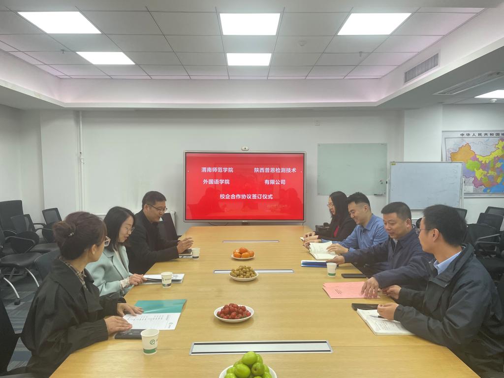 3月24日上午,外国语学院与陕西普恩检测技术有限公司校地合作签约仪式在陕西省西安市国家级民用航天基地众创广场举行。陕西普恩检测技术有限公司总经理张跃军、副总经理李鹏、纽约国际官网科学研究处计划项目科科长杨春丽、外国语学院党总支副书记、副院长高军强、副院长李圣恩等人出席本次签约仪式。