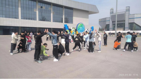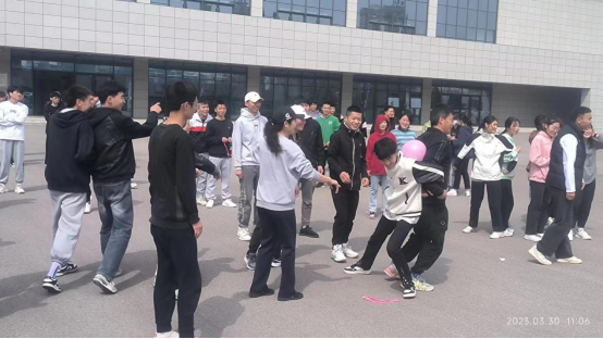 本次活动先以热身游戏“贴膏药”拉开了序幕,两人挨紧,面向圆心站立,10人为一组,场上一人为追者,另一人为逃者。追的时候,逃者可以跑到任何两个人旁边“贴膏药”,一旦贴住,贴住同学旁边的学员即变成为逃者,迅速闪避并引导出去追者。凡以手摸到被追者即为追上,此时追与被追者互换角色。此环节追者和逃者做着同样的动作,相互比划,相互追逐,大家忘却一切烦恼,在尽情的奔跑和欢呼中释放压力。