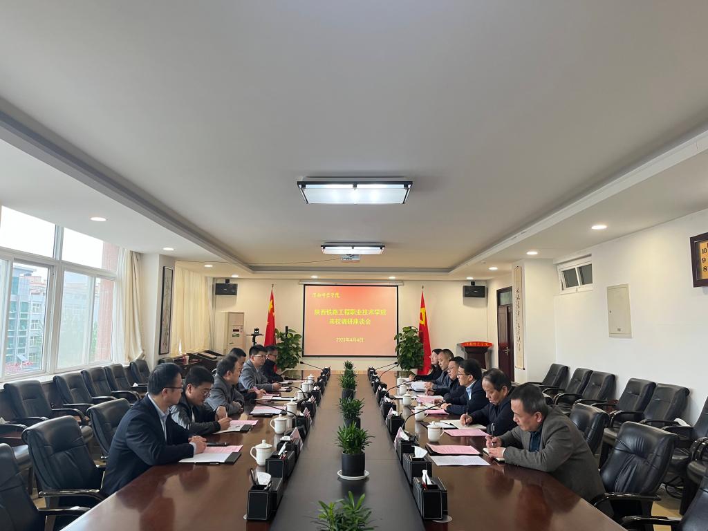 4月4日上午,陕西铁路工程职业技术学院副校长贺建锋一行来校调研交流。副校长曹强会见贺建锋一行,并召开座谈会,会议由曹强主持。