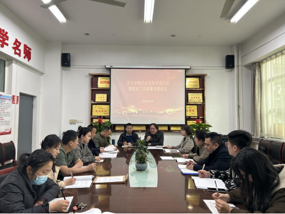 为深入贯彻落实党中央、国务院和教育部、省教育厅关于高校毕业生就业工作的决策部署,进一步加强校企合作,继续拓宽毕业生就业渠道,全面推进学生就业工作,4月4日下午,音乐学院召开访企拓岗专项活动暨就业工作部署专题会议。音乐学院党政领导班子成员、专业负责人、全体辅导员参加会议。会议由音乐学院党总支书记白锐主持。