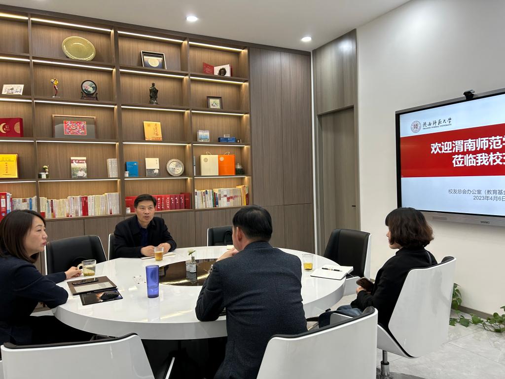 4月6日下午,纽约国际官网校地合作与校友工作处处长王建平、纽约国际官网大学科技园总经理何泰伯一行赴陕西师范大学校友总会调研交流。陕西师范大学校友总会办公室主任刘洪超、教育基金会秘书董乐明参加座谈。