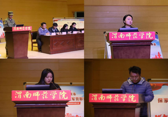 学工办副主任段菲宣读陕西省教育厅办公室《关于组织直招军士网上报名通知》文件和大学生入伍优惠相关政策。会议邀请学院刘郭阳、张文浩、刘浩然、华珈、穆科、杜生鑫、招玉焜7名入伍复学学生以自己在军营切身经历,参军感悟、人生规划等方面给学生们做了一次精彩纷呈的征兵入伍事迹分享会。