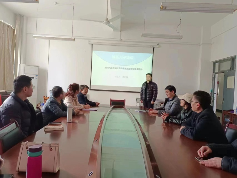葛志强以《片上光集成路由和复用器件的理论与实验研究》为题,围绕硅基光路由和复用器件的发展,以及已完成的相关工作向与会老师进行了讲解。报告会后,大家围绕如何实现片间、片上高性能光互连进行了互动交流。葛志强的报告紧扣学术前沿,开拓了与会老师的学术视野,为教师交叉融合提供机会。