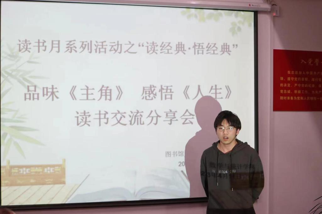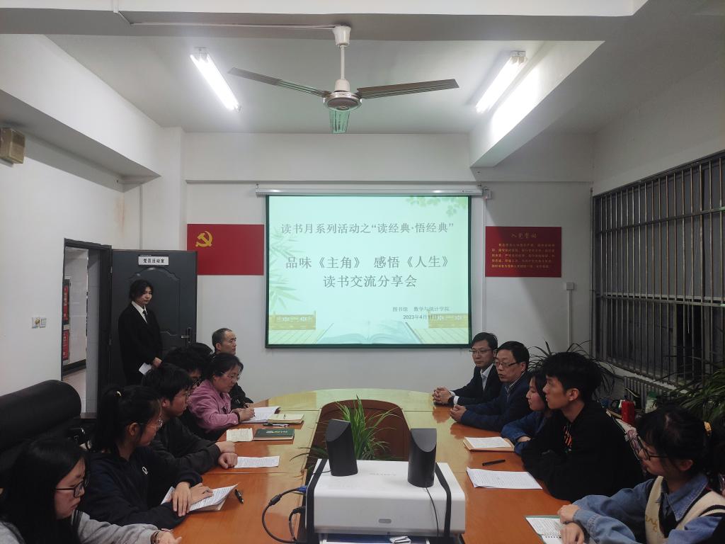 4月11日晚,图书馆、数学与统计学院在附属单位党总支党员活动室联合举办了以“品味《主角》感悟《人生》”为主题的读书交流分享会。