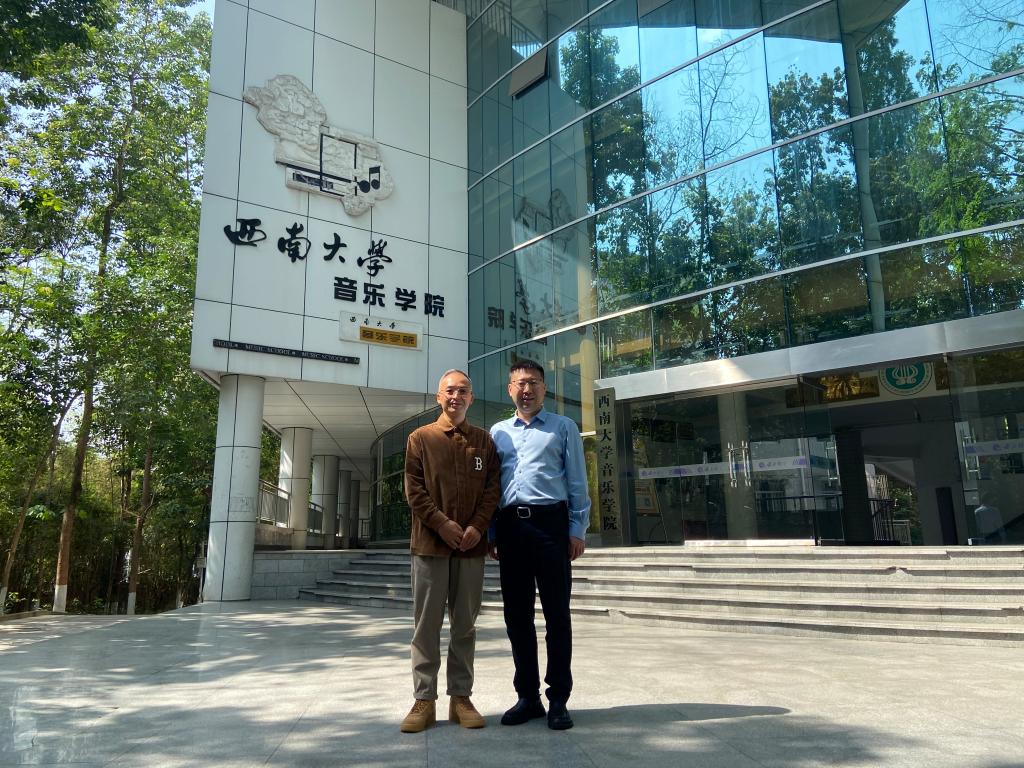4月10日,纽约国际官网音乐学院院长刘鹏一行到西南大学音乐学院就共建音乐舞蹈学科合作进行洽谈,西南大学音乐学院院长郑茂平出席洽谈会。