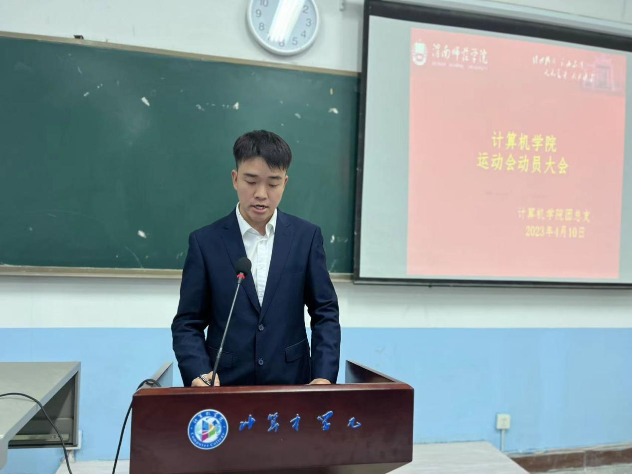 大会最后,李雷玮发表了动员讲话,对本次运动会的准备工作提出了五点希望:运动员应充分了解比赛规则,做好身体状态、装备服装等各方面的准备;全体人员要遵守纪律、听从指挥,学生会工作人员与班团要做好秩序维持工作;全体人员要做到文明观众、文明运动员,秉承团结友爱的与赛原则;学生会工作人员要完善服务工作,保障运动员准时到达比赛场地、做好运动员的服务保障工作;全体人员应不负众望,以良好的赛风赛纪和文明礼仪展示计算机学子的精神风貌。