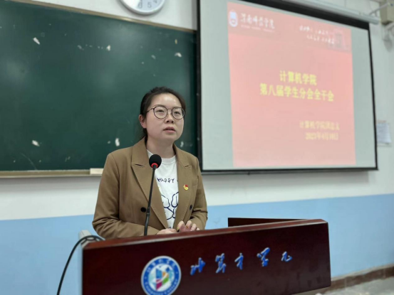 4月10日下午,计算机学院在同心楼5313教室举行第八届学生分会全干会暨2023年春季运动会动员大会。学院学工办副主任李雷玮、团总支书记张雪轲、第八届学生分会主席团、各部部长及干事代表参加会议。会议由团总支副书记孙悦主持。