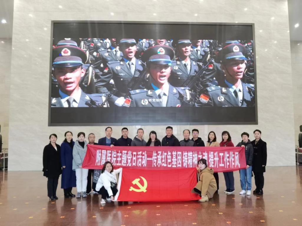 4月23日上午,附属医院党支部一行18名党员干部和职工走进渭南市军事博览园,参观红色教育基地,重温入党誓词,学习爱国主义精神,开展“传承红色基因 铸精神之魂 提升工作作风”主题党日活动。