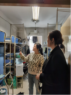 5月8日上午,体育学院学生工作领导小组深入包联的七号公寓,对学生及公寓情况进行及时了解和督促,党总支书记李春兰、党总支副书记闵雄飞、学工办主任朱颖妮、团总支书记李欣泽参加。